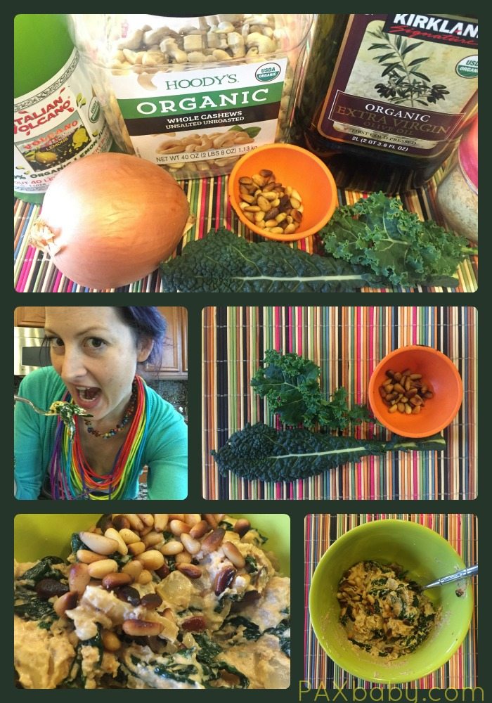 As a relatively new vegan cook, I found myself in a rut, a chickpea rut to be exact! But after spending a lot of time with meat free blogs, creative cookbooks, and good old trial and error, I have branched out into the art of cooking with raw cashews! The raw cashew can be wonderfully versatile, unbeknownst to me who has always thought that unless the food in question was roasted and salted within an inch of its life, it was useless! Behold, the raw cashew transformed into a delicious “cheese” sauce, sauteed with onions and mixed with fresh kale to create a delicious wilted kale appetizer or entree depending on how you choose to serve it! There are a few variations to this recipe so I’ll include them all to inspire your creativity!
