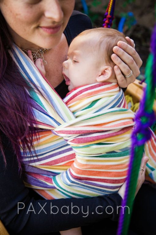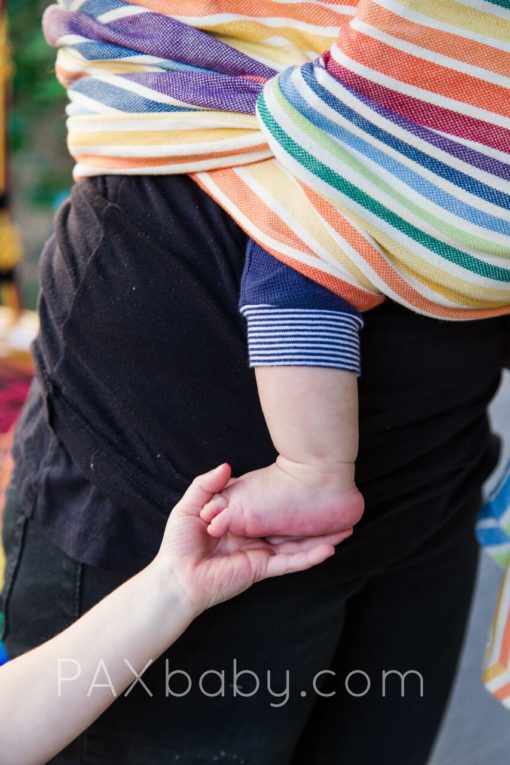 Designed last February, Just One More Rainbow is named for the PAXfamily’s Baby #8 who was nicknamed “Just One More Baby D.” Our Blaise Bernadette was born on May 21, 2016, and is deeply missed by her family and our babywearing community who surrounded our family with love and support. As our first loss, BB8 made an indelible mark on all our hearts, and will continue to be honored by YOU wearing YOUR baby in this rainbow wrap designed and named for our sweet baby.