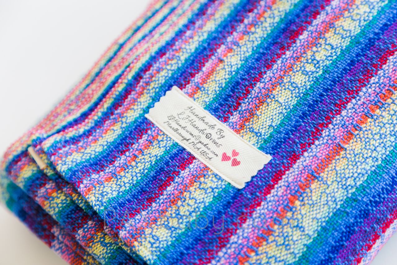 Enjoy this burst of color and soft, supple weave; Trailing Rainbows quickly became one of my go to wraps due to its extreme snuggle factor and bright colors! Good luck choosing a favorite weft; every one is stunning!