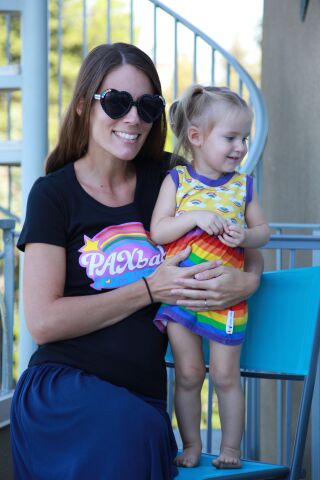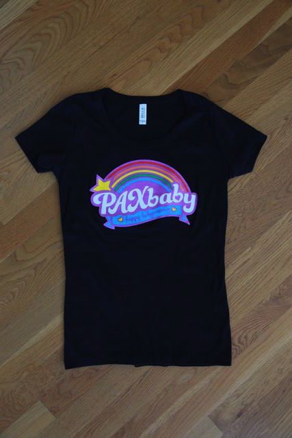 If I could give you the shirt off my back, it would be this one! Black to make the rainbow pop, *happy babywearing* to bring peace to the world, and PAXbaby because we rock! We really do!