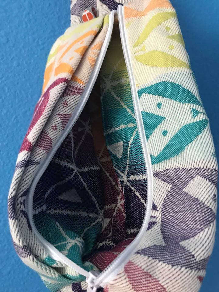I just love this modern spin on a whimsical pattern. Bold, bright, beautiful, and RAINBOW, our Alpha PAX is foxes done Tekhni- style and in FULL color. Woven in twill, this Cotton and Repreve based wrap is a medium-bodied wrap, soft, cushy, while also grippy, and is perfect for all ages.