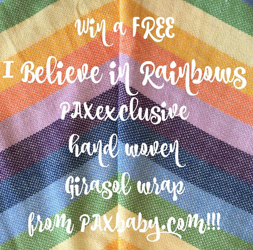 A FREE I Believe in Rainbows, inspired by the Never Rainbow, is the perfect way to perk up your day, put a smile on your face, and share the babywearing love so the name of the game is comment on our Facebook post with any message you’d like to leave us, comment again tagging a friend (as many as you like) and share this original post to your own page or a group! If you don’t win this adorable Girasol today, we look forward to seeing you at PAXbaby’s stocking tomorrow at 10am! We would love to see you all then, bring your credit cards because PayPal will be turned off for the first ten minutes of the stocking!